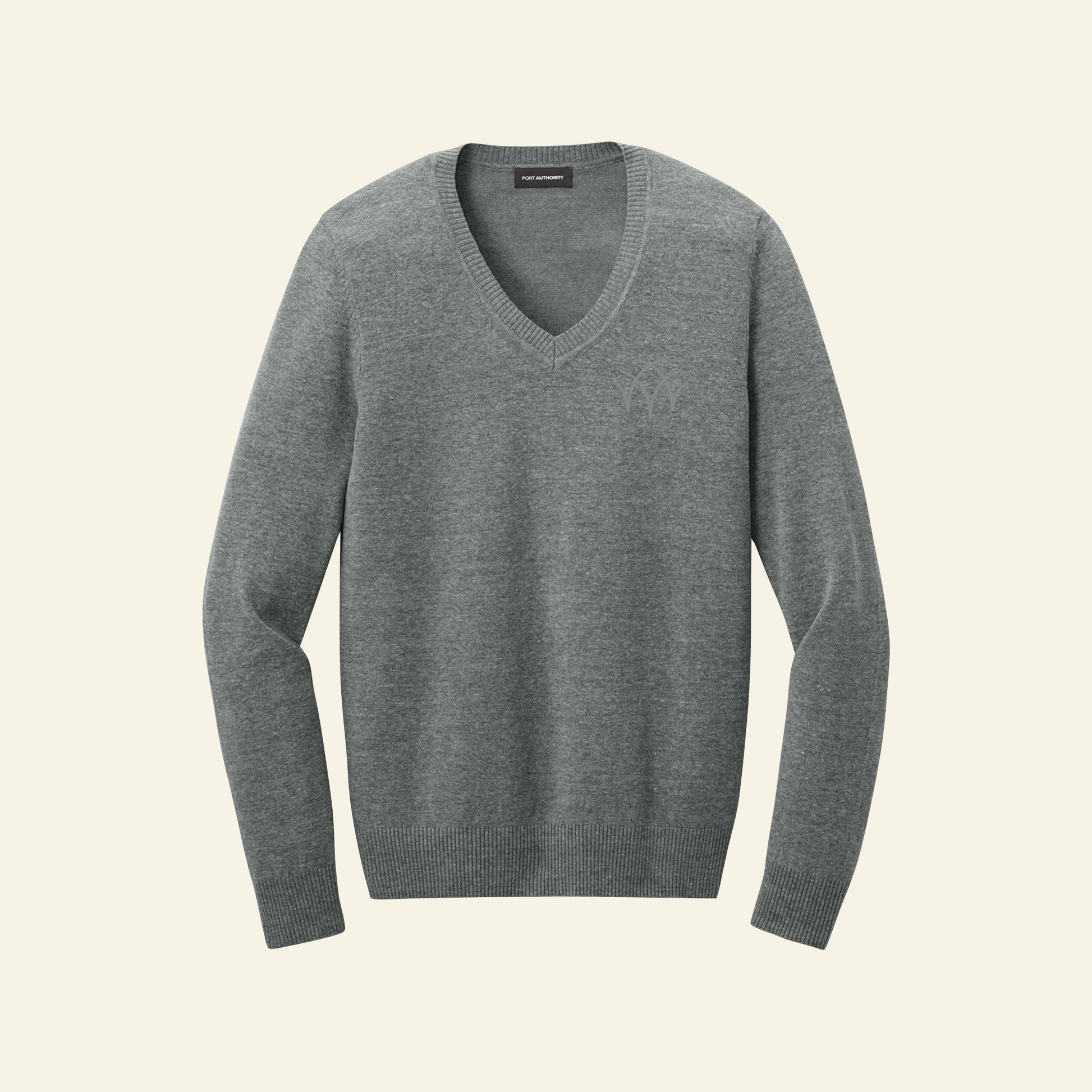 Blending professionalism with supreme comfort, this beautiful tri-blend sweater is an exceptional addition to any work wardrobe. 56/29/15 cotton/nylon/acrylic. Fully-fashioned seams. Machine washable. 2x2 rib knit V-neck, cuffs and hem. Aspen icon embroidered at 2.5" W.